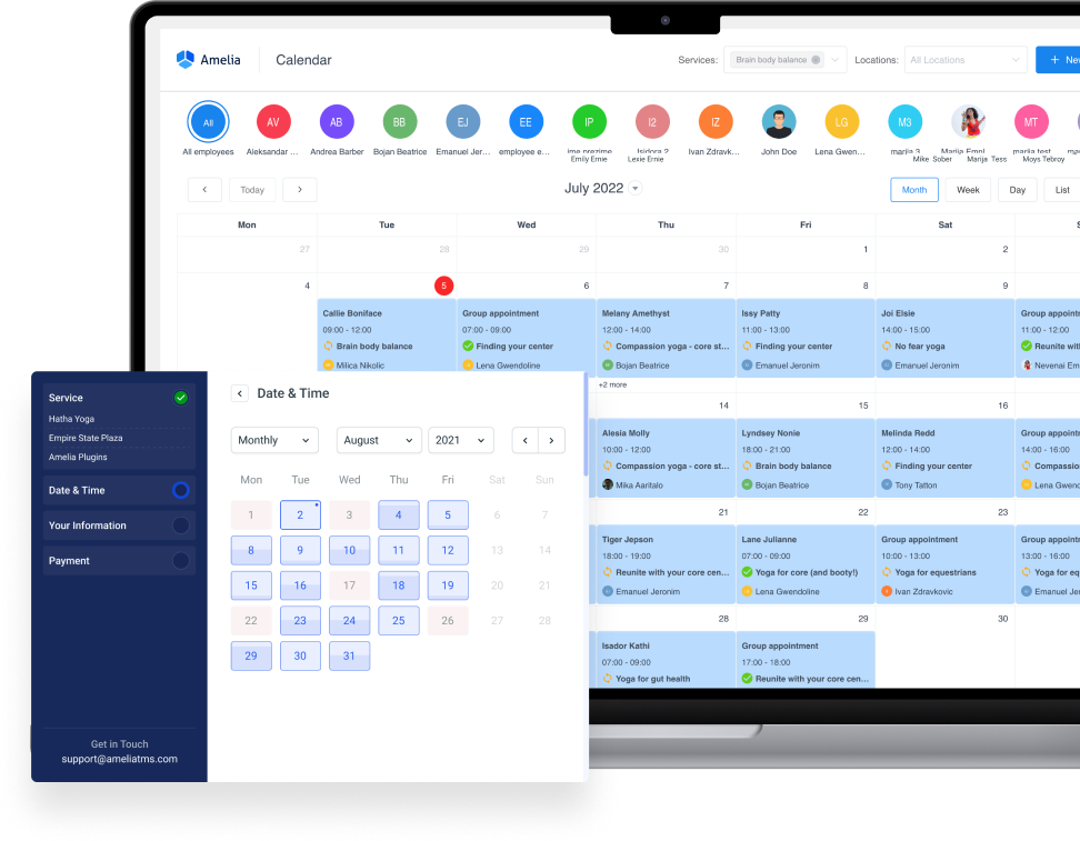 The Amelia WordPress booking plugin will fully automate the interaction with potential customers, help them pick the right service and employee, take care of the payments.